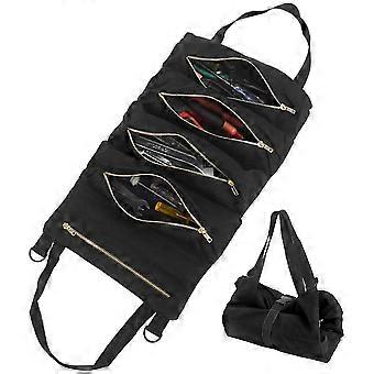 2025 Fong Tool Bag with 5 Zippered Pockets, Portable Canvas Tool Bag, Tool Roll Auto Organizer Tool for Electrician Plumber or Mechanic (Black)