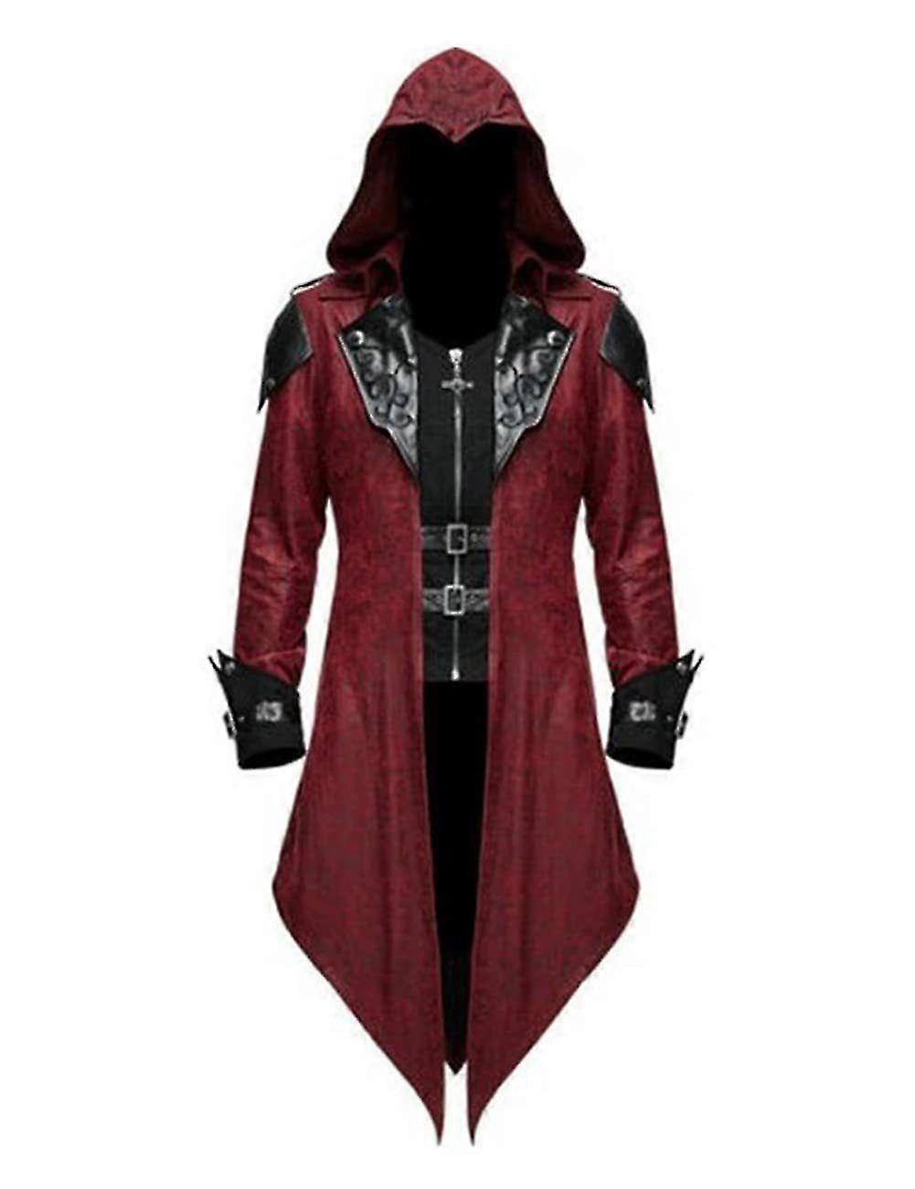 2025 Gothic Hooded Tailcoat Jacket Black Steampunk Coat with Red Embroidery Victorian Punk Outerwear for Women