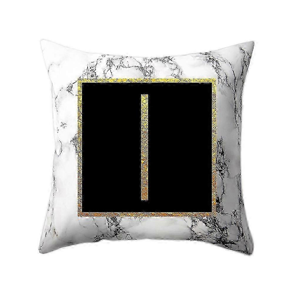 2025 I Alphabet White Marble Pattern Pillow Case