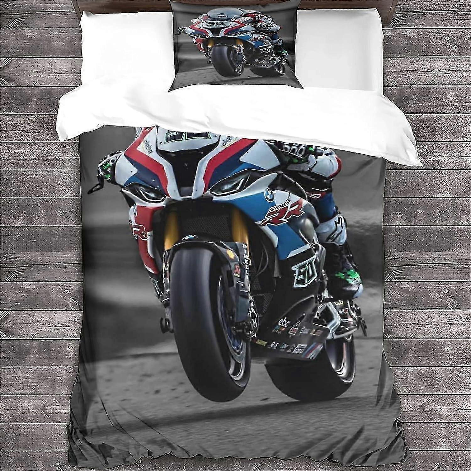 2025 Motogp Motorcycle Bedding Set, with Duvet Cover and Pillowcase, Pieces, Soft and Breathable Microfibre, with Zip, Motocross, Single 135*200 CM