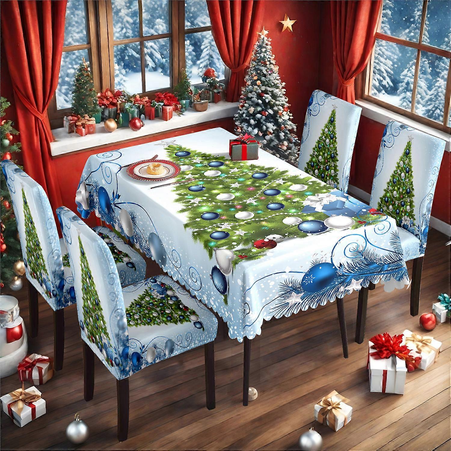 2025 New Digital Printed Waterproof Christmas Tree Tablecloth Tablecloth Christmas Tablecloth Chair Cover Set TC-161 Set (140*210cm Waterproof