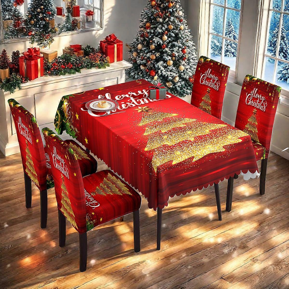 2025 New Digital Printed Waterproof Christmas Tree Tablecloth Tablecloth Christmas Tablecloth Chair Cover Set TC-170 Set (140*210cm Waterproof