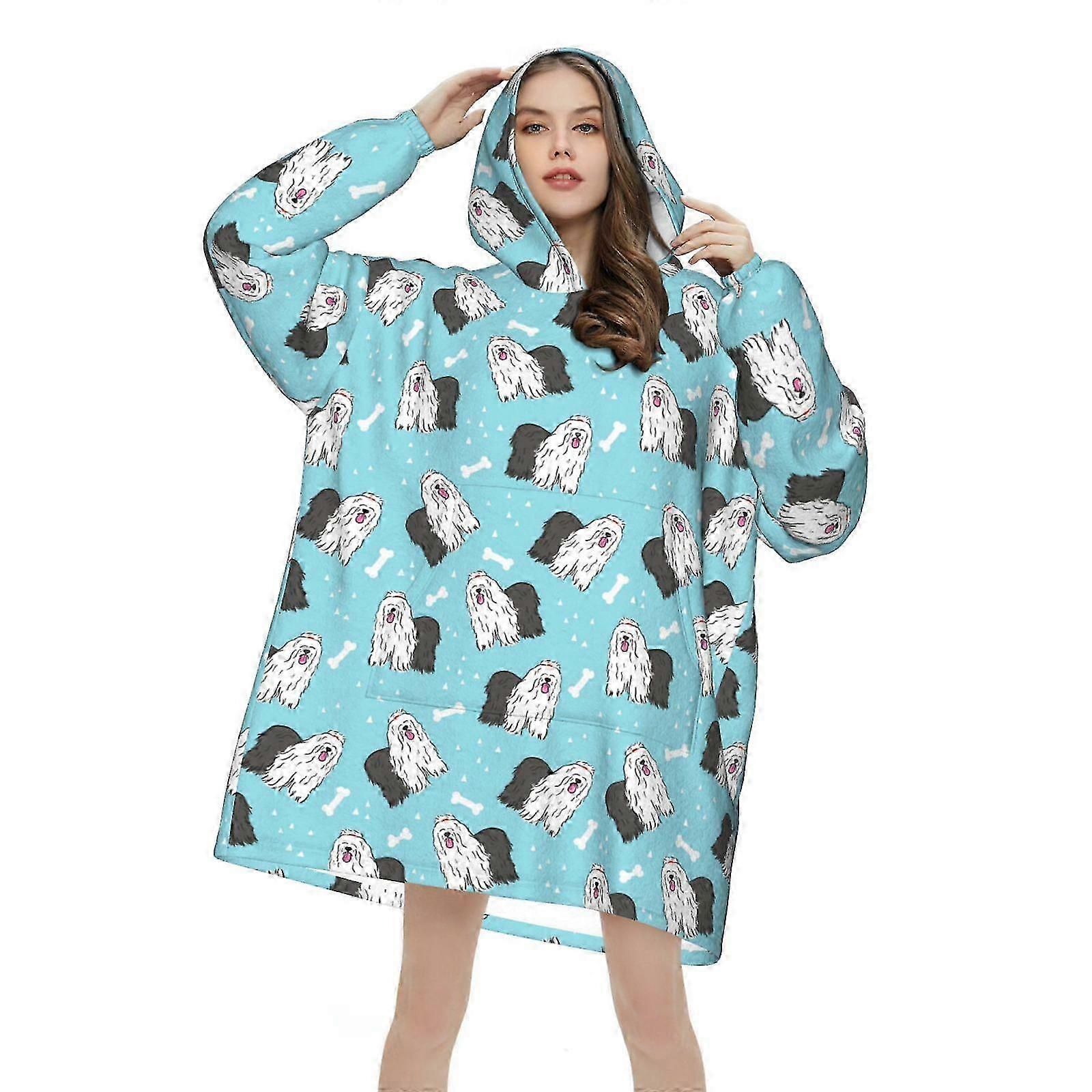 2025 Old English Sheepdog Pattern 02 Wearable Blanket Hoodie for Women Men Flannel Blankets Hooded Blanket
