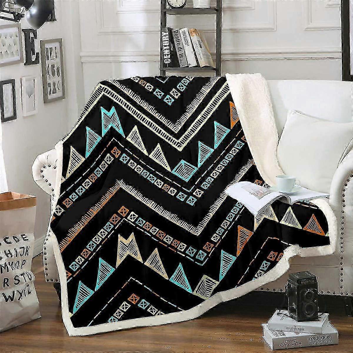 2025 Tribal Stripe Fleece Blanket for Sofa Chair Couch Women Geometry Wave Pattern Sherpa Blanket Boho Style Plush Throw Blanket Room Decor Exotic Sim