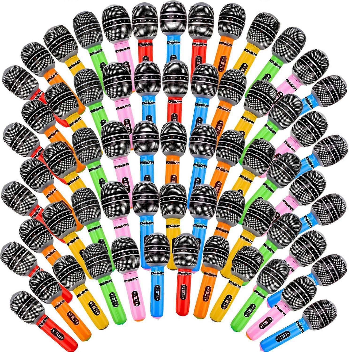 Quality Material: The blow up microphone are made of PVC material, safe, sturdy, durable and portable, those could be inflated and deflated, which is convenient to store and can service you for a long timeWidely Use: The inflatable rock star microphones are are suitable for various occasions, such as all kinds of music theme parties, karaoke, travel, camping, dance parties, carnival and so onSize Information: The inflatable microphones measures approx. 25 x 6 cm/ 9.8 x 2.4 Inch length, suitable for kids and adults hands, easy to store and carry, making it convenient for you to enjoy the party with friends and release the pressureWhat Will You Get: The 64 Pieces rock inflatable microphone kit are rich in quantity and style to meet your various decoration needs or to share with others, making your party more interesting and cheerful and your friend and guest enjoy themselvesNolvety Design: There are inflatable microphones props in 6 colors, including blue, pink, red, green, yellow, and orange, the vibrant colors and realistic design make you feel like a rock star