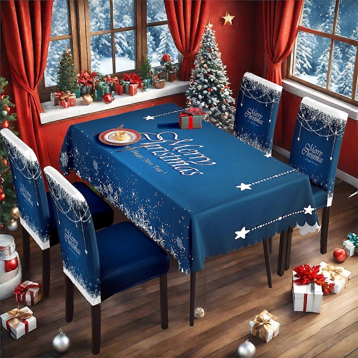 20255 New Christmas Tablecloth Chair Cover Milk Silk Set Waterproof Tablecloth Stretch Chair Cover TC-15 Set (140*210cm Waterproof Tablecloth + 4