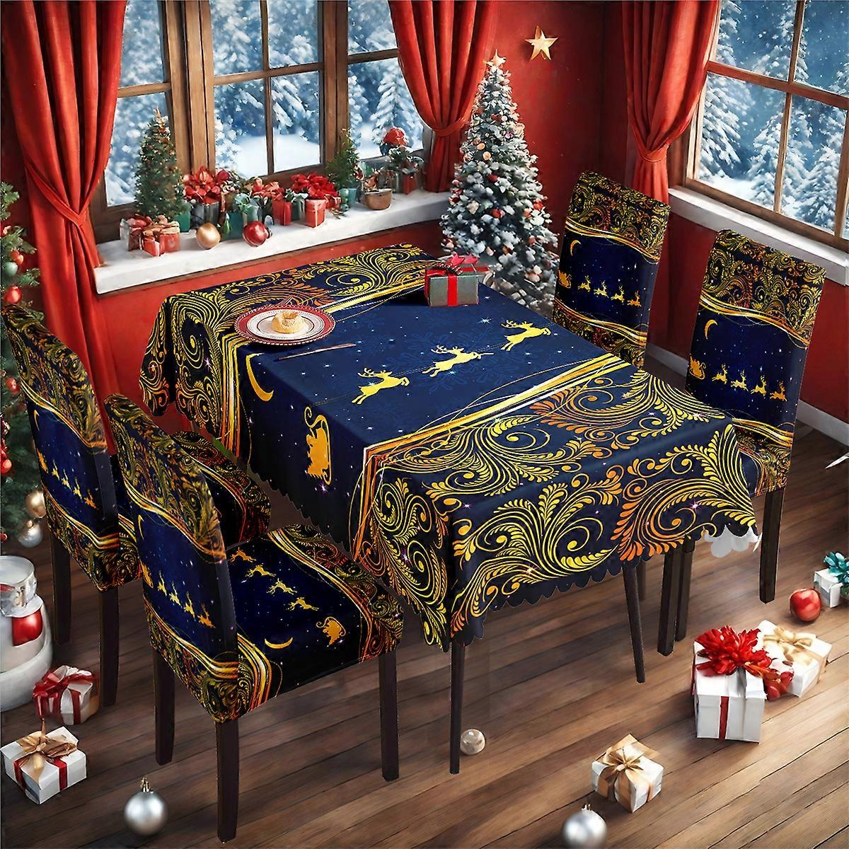 20255 New Christmas Tablecloth Chair Cover Milk Silk Set Waterproof Tablecloth Stretch Chair Cover TC-21 Set (140*210cm Waterproof Tablecloth + 4