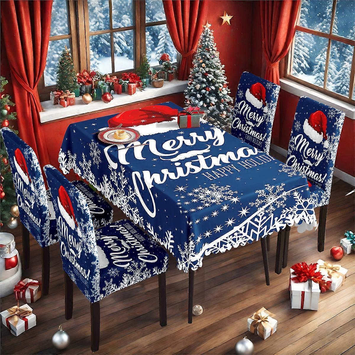 20255 New Christmas Tablecloth Chair Cover Milk Silk Set Waterproof Tablecloth Stretch Chair Cover TC-82 Set (140*210cm Waterproof Tablecloth + 4