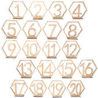 20pcs Hexagon 1-20 Wooden Table Numbers with Holder Base for Wedding Table Decoration
