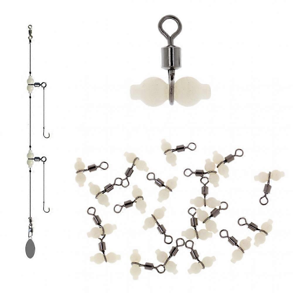 20pcs Fishing Rolling Barrel Swivel with Luminous Beads Set Black Fishing Tackle Connector 2#/4# - White, 2