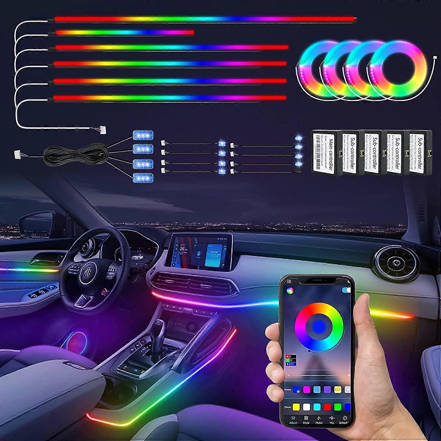 22 in 1 RGB Dreamcolor Acrylic Interior Car LED Strip Light with Wireless APP Fiber Optic Ambient Lighting Kits Neon Dual Zone
