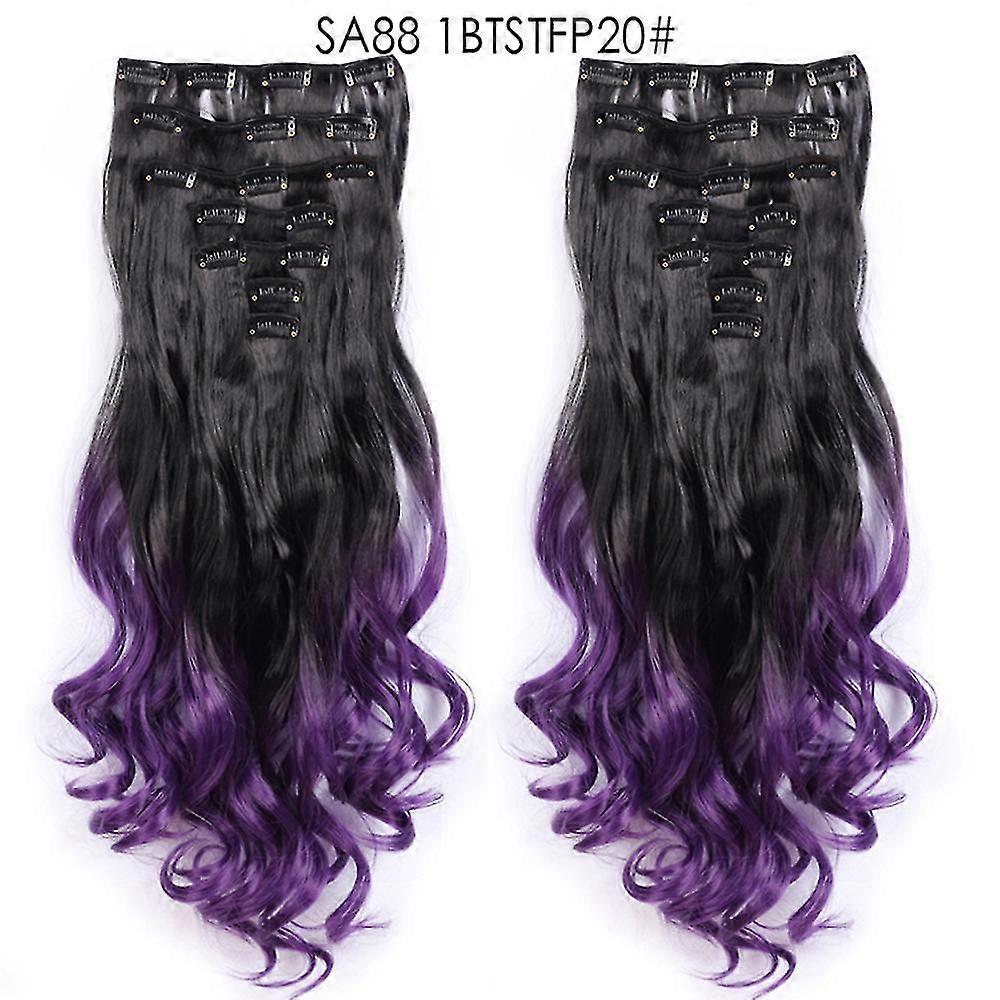 22inch High Temperature Silk Cos Wig Brown Blue Gradient Color Long Curly Hair