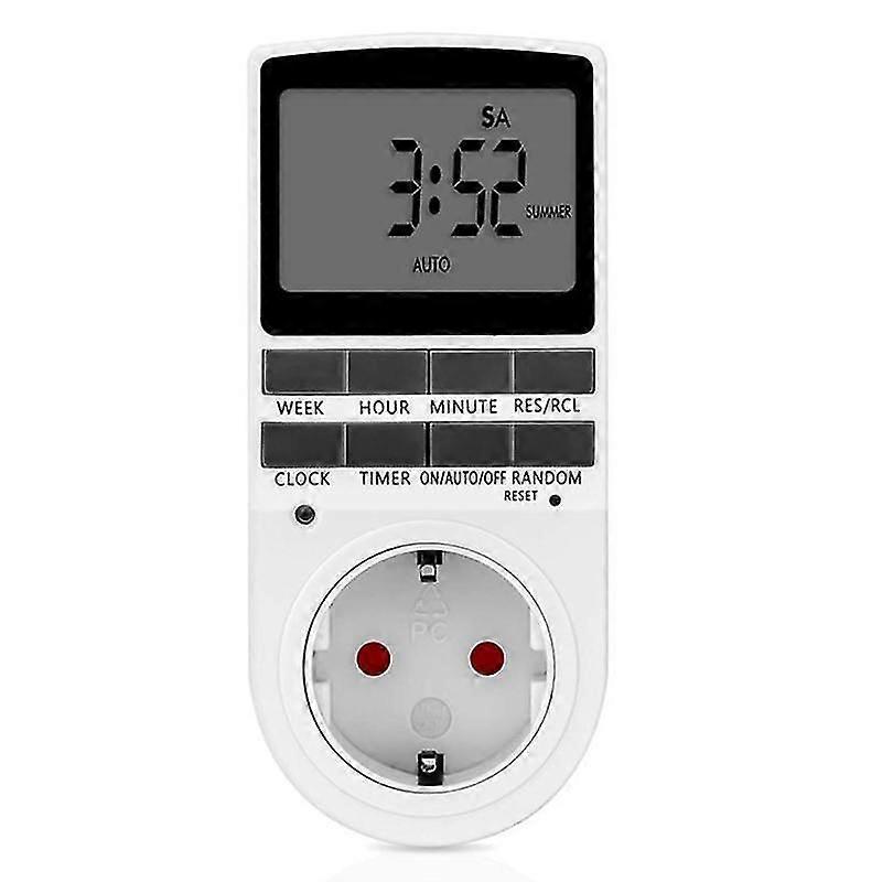 Specifications:LCD display for easy and clear reading.This timer plug has up to 10 different ON/OFF programs set over a week, with the option of having them repeat for the following weeks.Comes with a setting that automatically turns electronic devices around the house off when not being used.Providing 16-combination of daily-programs.With summer time change-over.Random function for security lights. Type: Timer SwitchMaterial: PCVoltage: 230VSetting Time: 1 MinuteOperating Temperature: -10 to 40 Degree CelsiusPlug Type: EU PlugFeatures: Timer, Plug-in, LCD Display, Timing SocketSize: 10cm x 5cm/3.94" x 1.97" (Approx.) Notes:Due to the light and screen setting difference, the item's color may be slightly different from the pictures.Please allow slight dimension difference due to different manual measurement. Package Includes:1 x Timer Switch