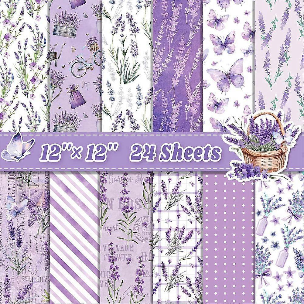 24 Sheets Scrapbook Paper 12inch X 12inch Double-Sided Bows Pattern Paper Decorative Decoupage Cardstock Lavender
