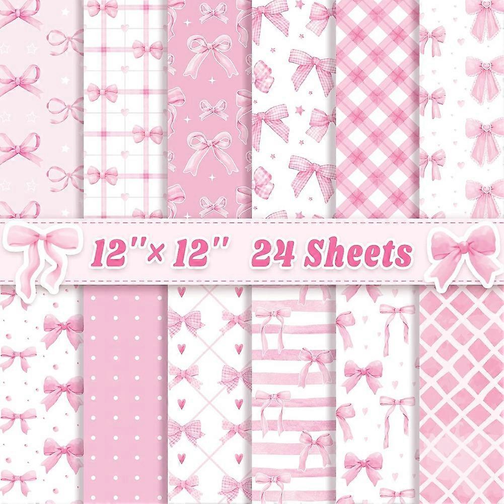 24 Sheets Scrapbook Paper 12inch X 12inch Double-Sided Bows Pattern Paper Decorative Decoupage Cardstock Bow