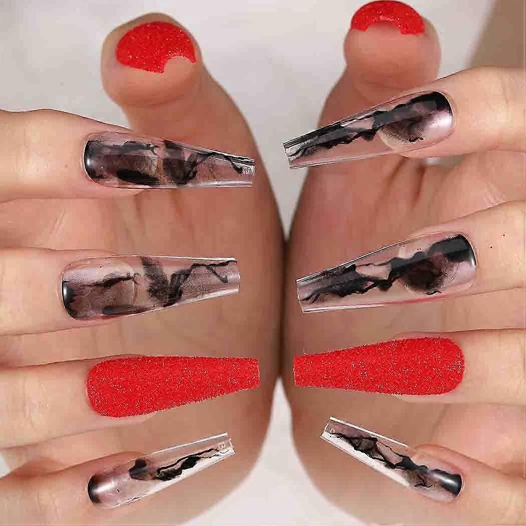 24PCS Glossy Smoke Pattern Fake Nails Coffin Extra Long Press on Nails with Design Ballerina Acrylic Super Long False Nails Designer Full Cover Artifi