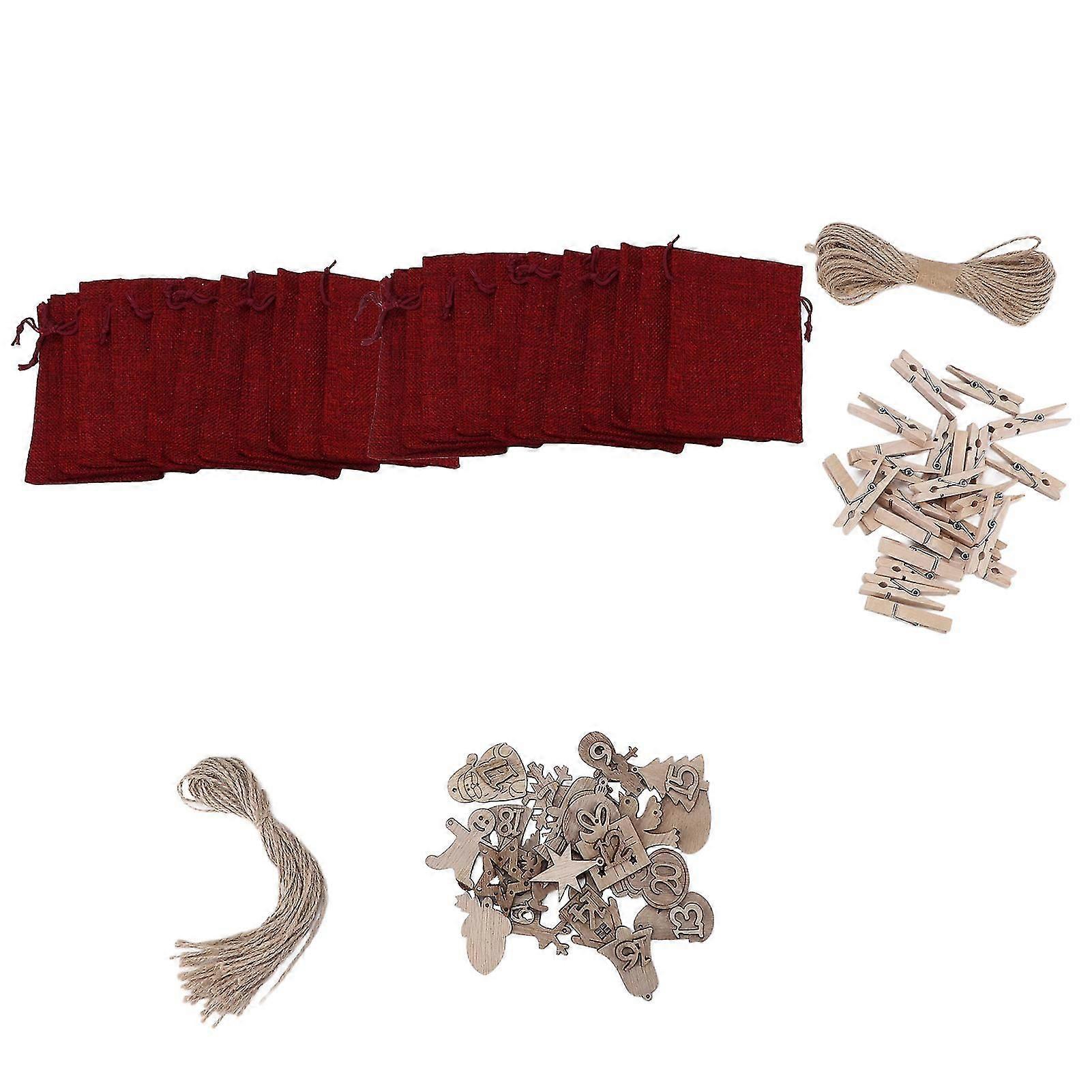 24PCS Christmas Bag Christmas Advent Calendar Countdown Pouch Drawstring Bag Sack Hanging Gift with Clips