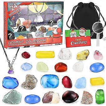 24Pcs Christmas Geographic Rocks Minerals Fossil Gemstone Advent Calendar Countdown Kit for Kids