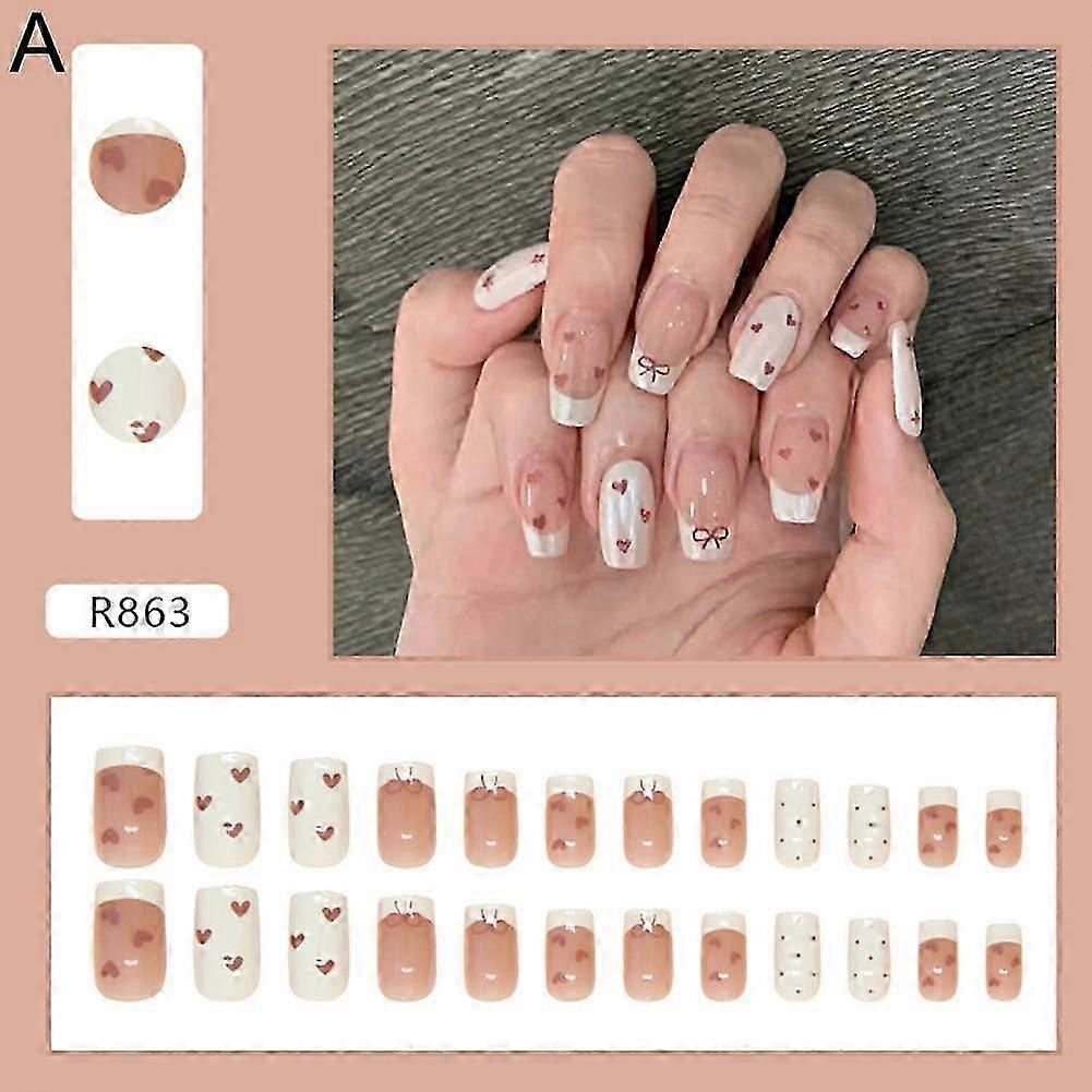 24 Pcs French Fake Nails Removable Nail Chips Nail Patches Simplicity Beautiful