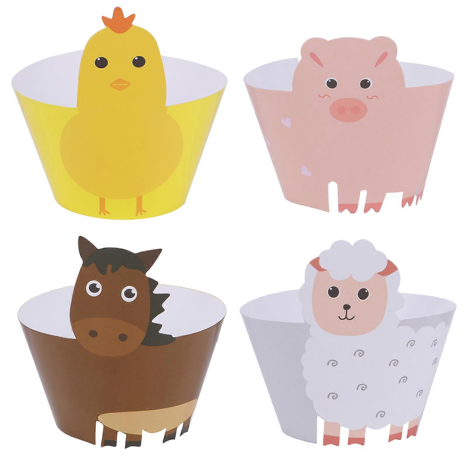 24pcs Cake Wrapper Holders Cartoon Animal Paper Decorative Wrapping Tool