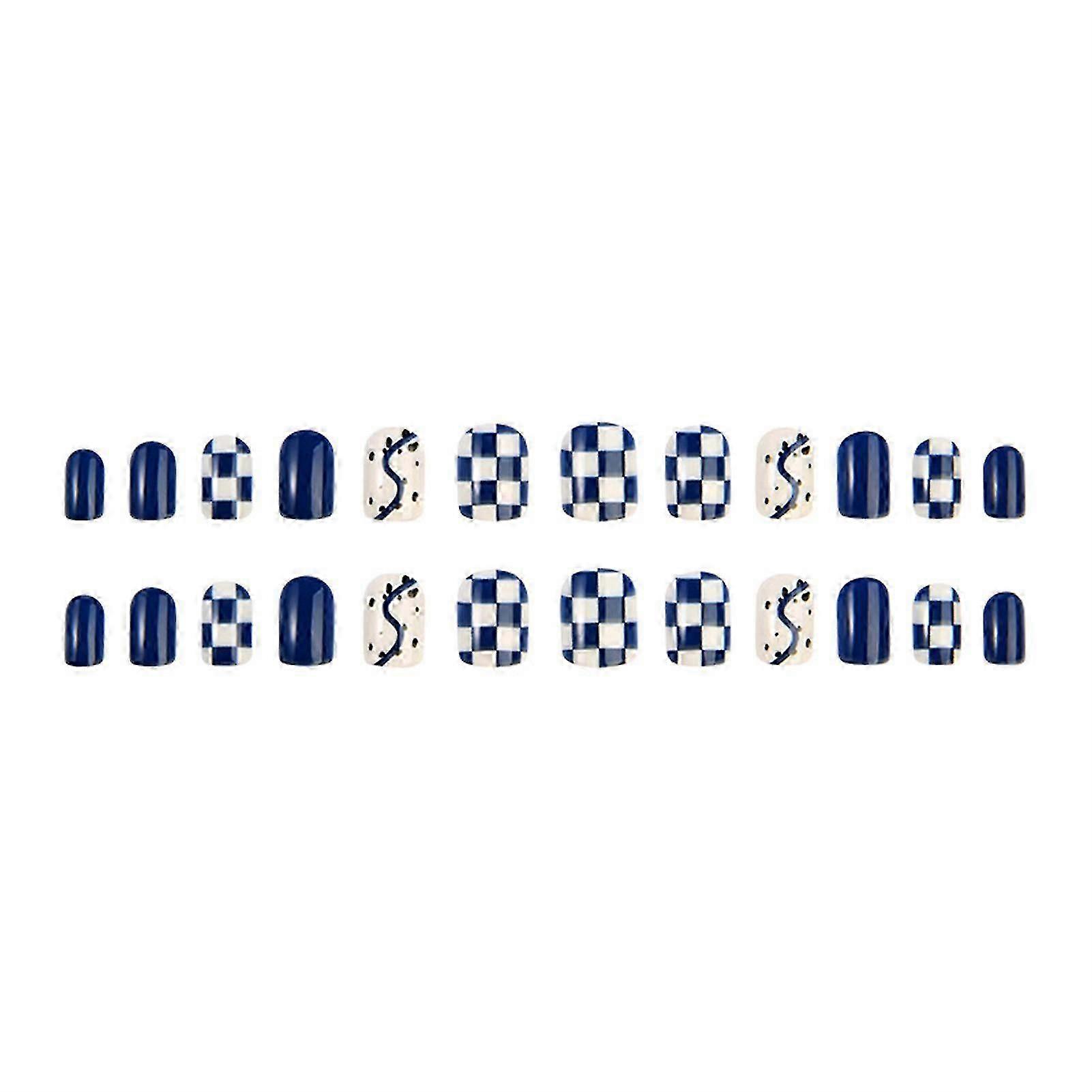 24pcs Chessboard Artificial Nail Popular Long Press-on Nails For Nail Art Beginners Practice