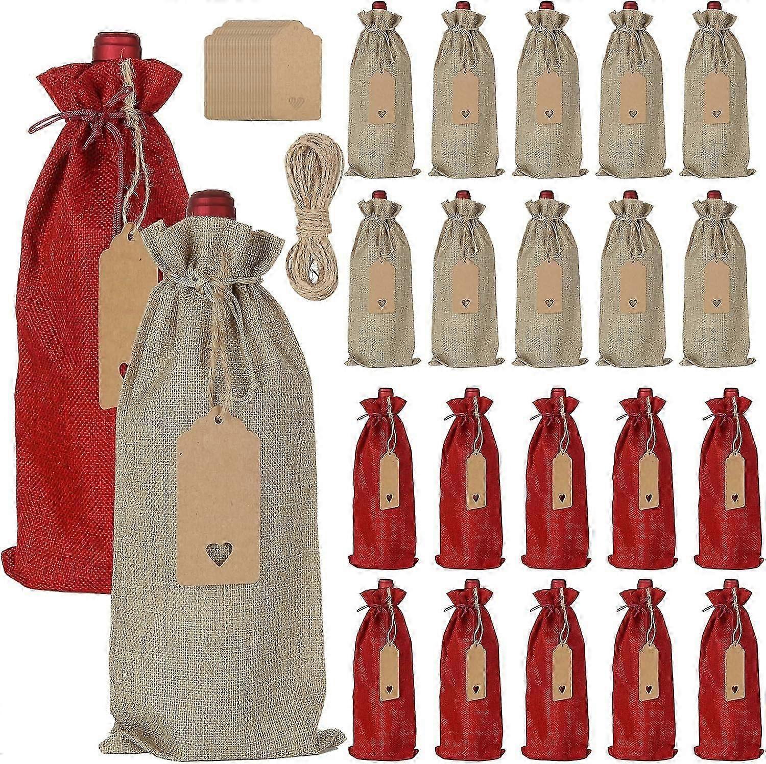 24PCS Wine Bottle Bags with Drawstring, Jute Hessian Burlap Wine Gift Bottle Bags, Reusable Fabric Bottle Gift Bags with Blank Tags and Ropes