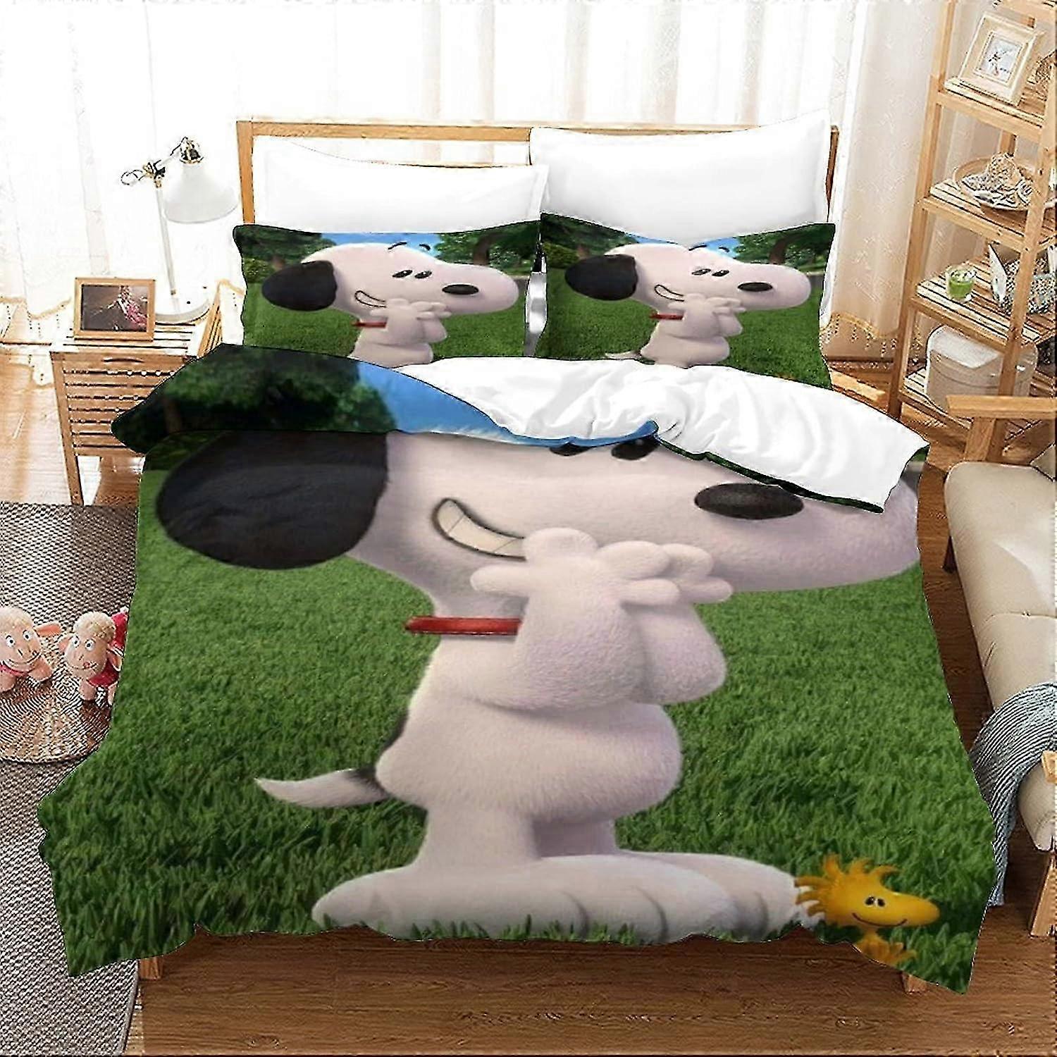 25-26 Snoopy Animated Characters Bedding Set, with Duvet Cover and Pillowcase, Pieces, Soft and Breathable Microfiber, with Zipper, Cartoon,