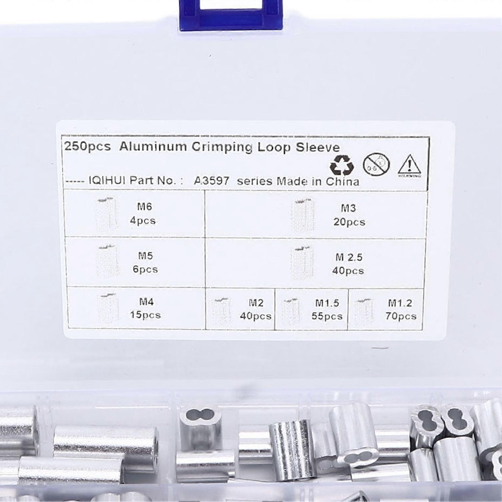 250Pcs/Set Aluminum Cable Ferrule 8 Aperture Double Barrel Wire Rope Crimping Loop Sleeve Kit for RV Railway Industry