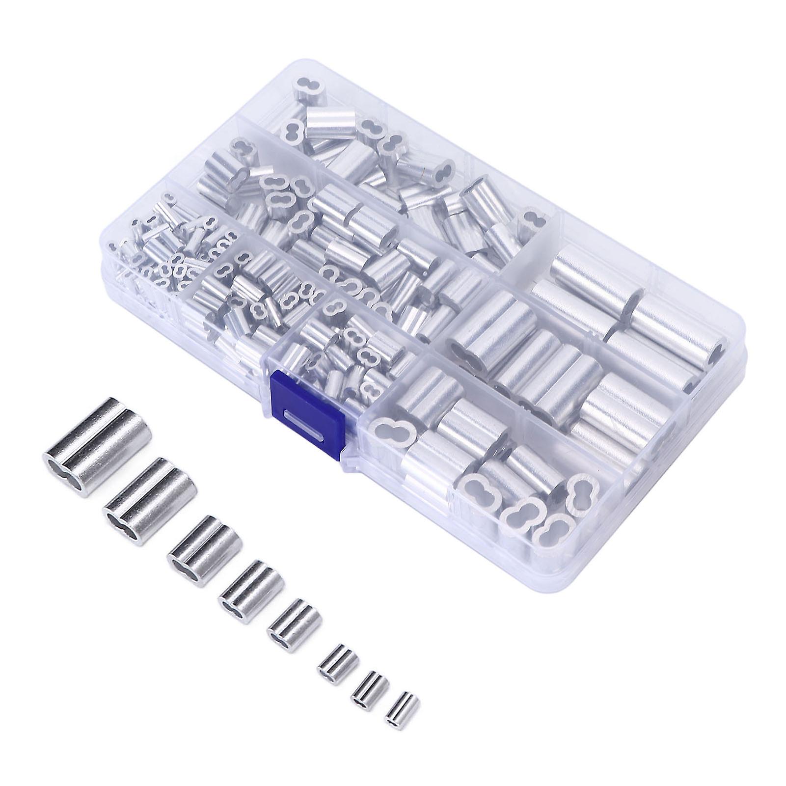 250Pcs/Set Aluminum Cable Ferrule 8 Aperture Double Barrel Wire Rope Crimping Loop Sleeve Kit for RV Railway Industry