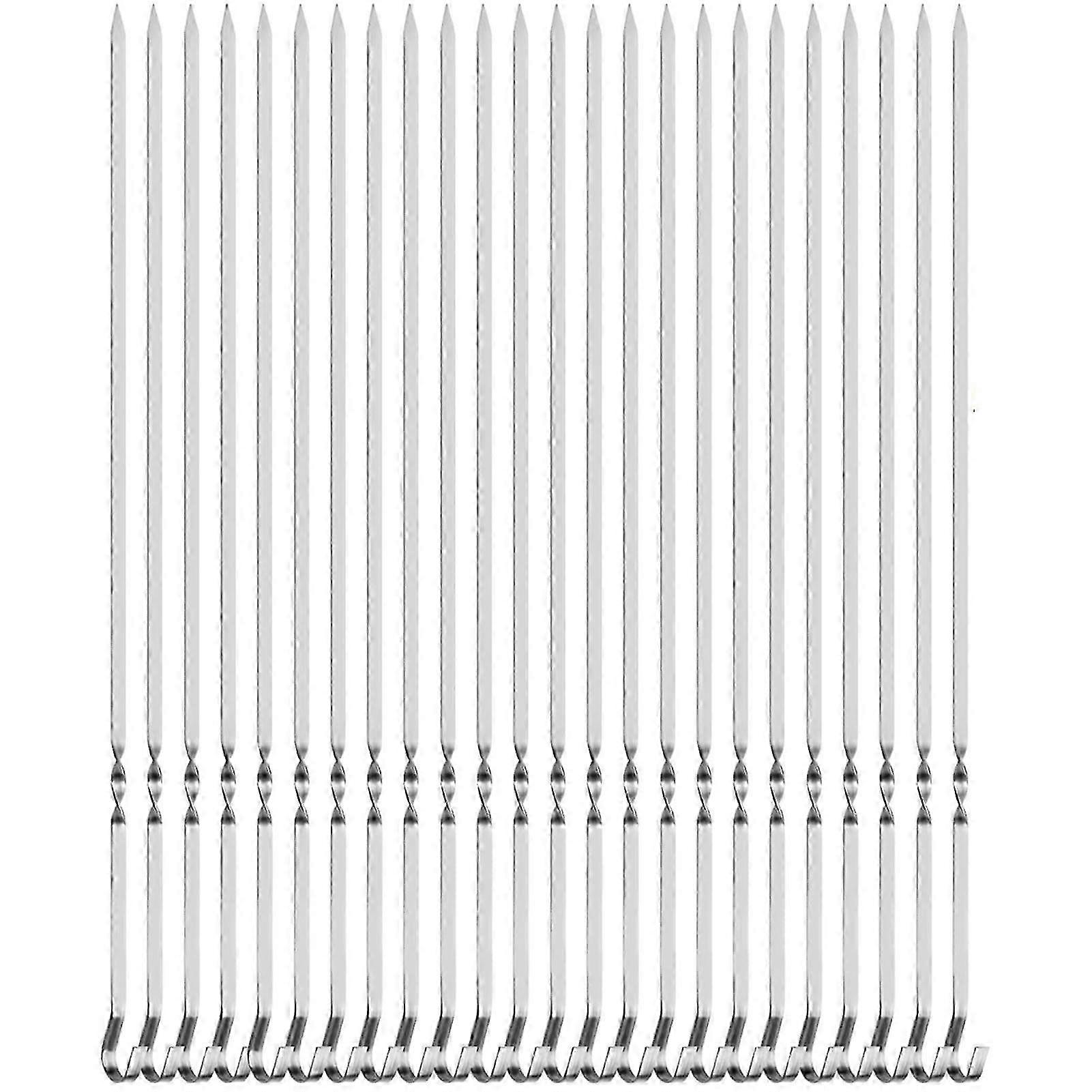 Features<br> :<br> Durable and Versatile: This set includes 25 grilling flat skewers made of high-quality stainless steel ensuring long-lasting use for a variety of bbq dishes like shawarma kebabs meat chicken and vegetables.<br> Easy to Use and Clean: These heat-resistant skewers are designed for convenience with a portable flat shape that makes them easy to handle on the grill. They are also dishwasher-safe for quick and effortless cleaning after use.<br> Superior Heat Resistance: Crafted from premium stainless steel these skewers are heat-resistant and can withstand high temperatures without warping or bending making them ideal for grilling a wide range of foods like meat shrimp chicken and vegetables.<br> Eco-Friendly and Reusable: Say goodbye to disposable skewers with this set of 25 reusable stainless steel skewers reducing waste and saving you money in the long run. Enjoy countless BBQs with these environmentally friendly alternatives.<br> Perfect for Outdoor Cooking: Whether you're camping tailgating or hosting a backyard BBQ these long kebab skewers are the perfect companion for outdoor cooking adventures. Their flat design ensures even cooking and delicious results every time.<br> Specification<br> :<br> Material:Stainless steel<br> Quantity: 25pcs<br> Length: 39cm<br> includes:<br> 25PCS * Grilling Flat Skewers Set