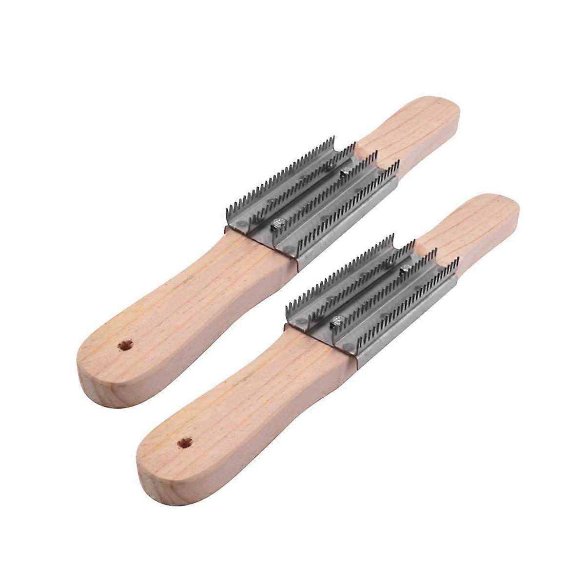 2Pack Buffing Wheel Rake,14Inch Stainless Steel Metal Serrated Brush with Wooden Handle for Compoun