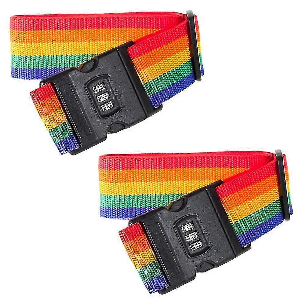 2PCS 2M Adjustable Luggage Straps Safety Suitcase Belts Travel Bag Accessories with Combination Lock (Colorful)