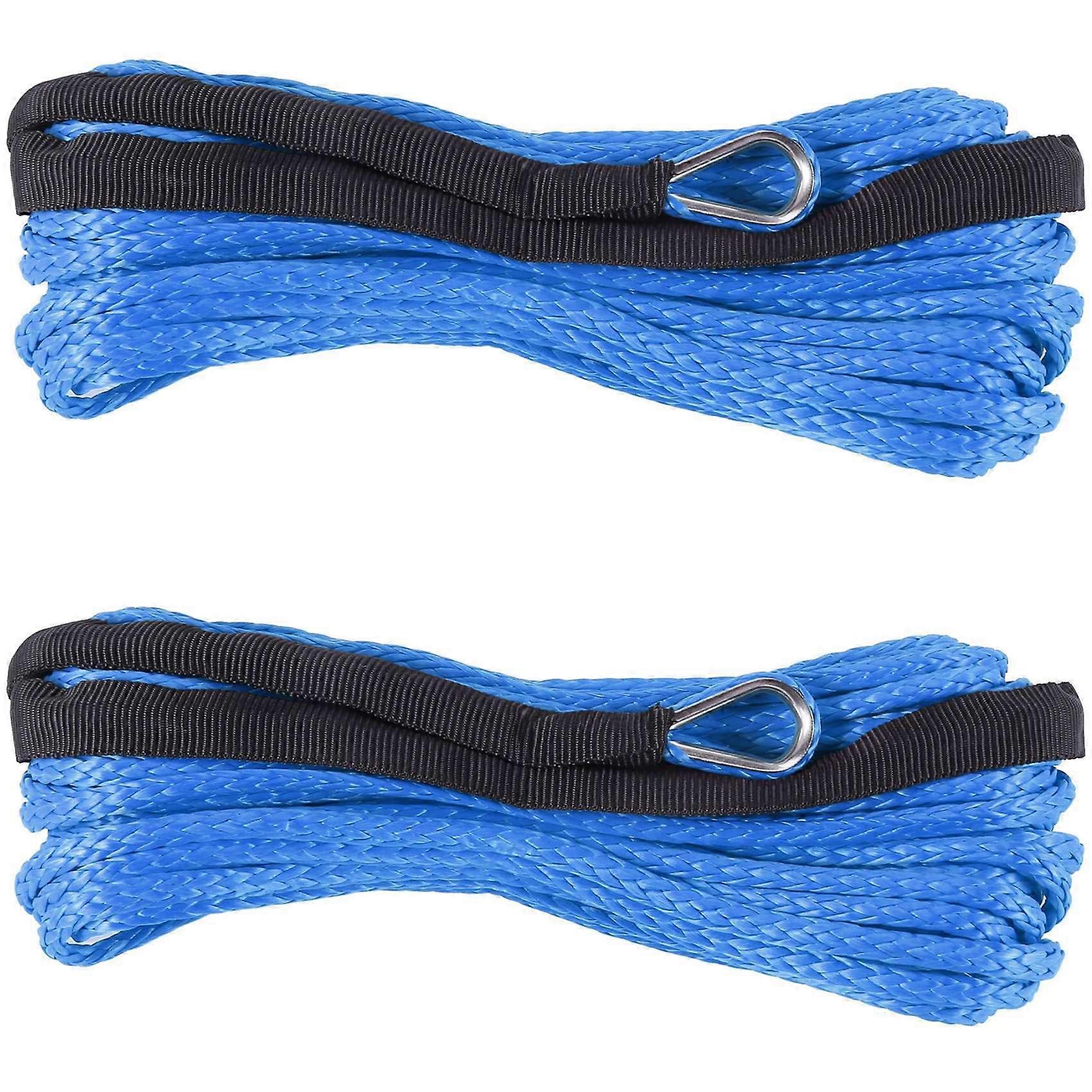 2pcs 3/16 Inch x 50 Inch 7700 LBs Synthetic Winch Line Cable Rope with Protection Sleeve for ATV UTV (Blue)