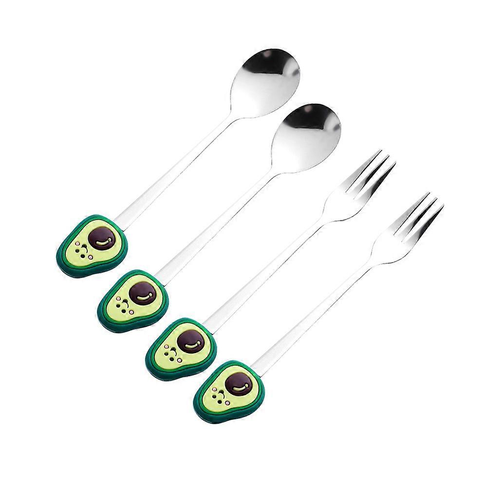 2pcs Stainless Steel Lovely Spoons Ice-cream Dessert Spoons with 2pcs Forks