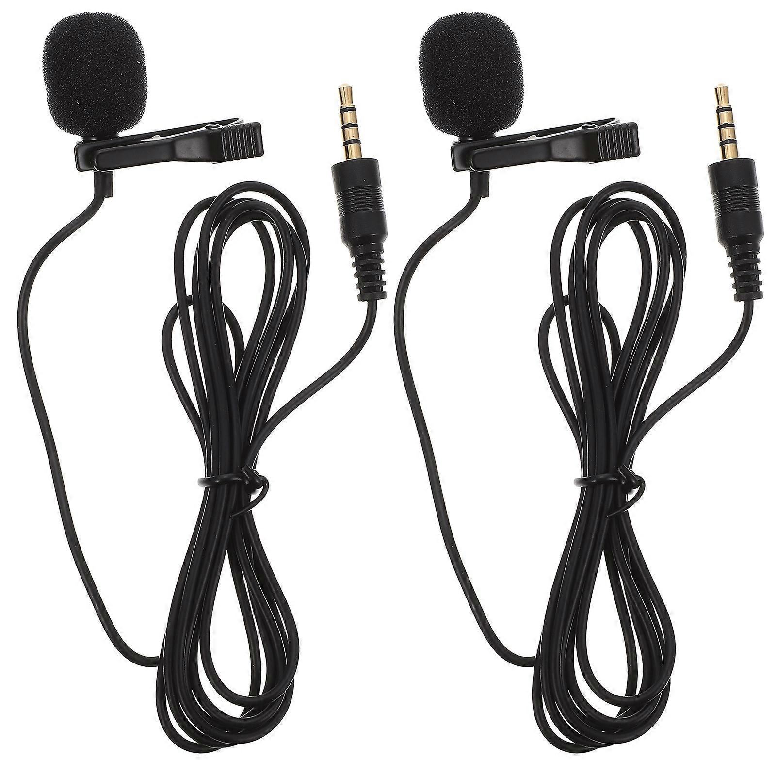 2Pcs Cellphone Lapel Microphone Portable Laptop Mic Clip-On Microphone Black
