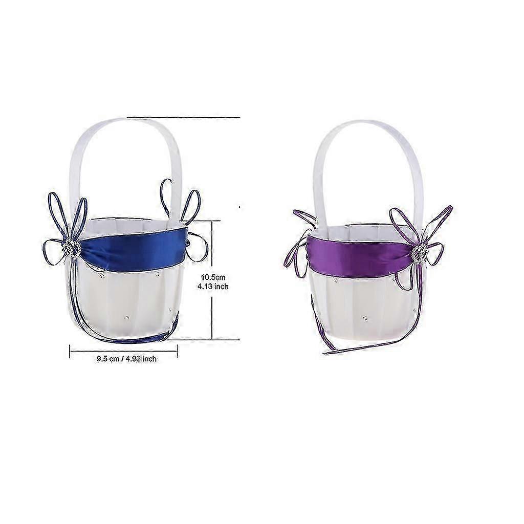 2Pcs Satin Wedding Flower Girl Basket Double Heart Rhinestone Decor Royal hr