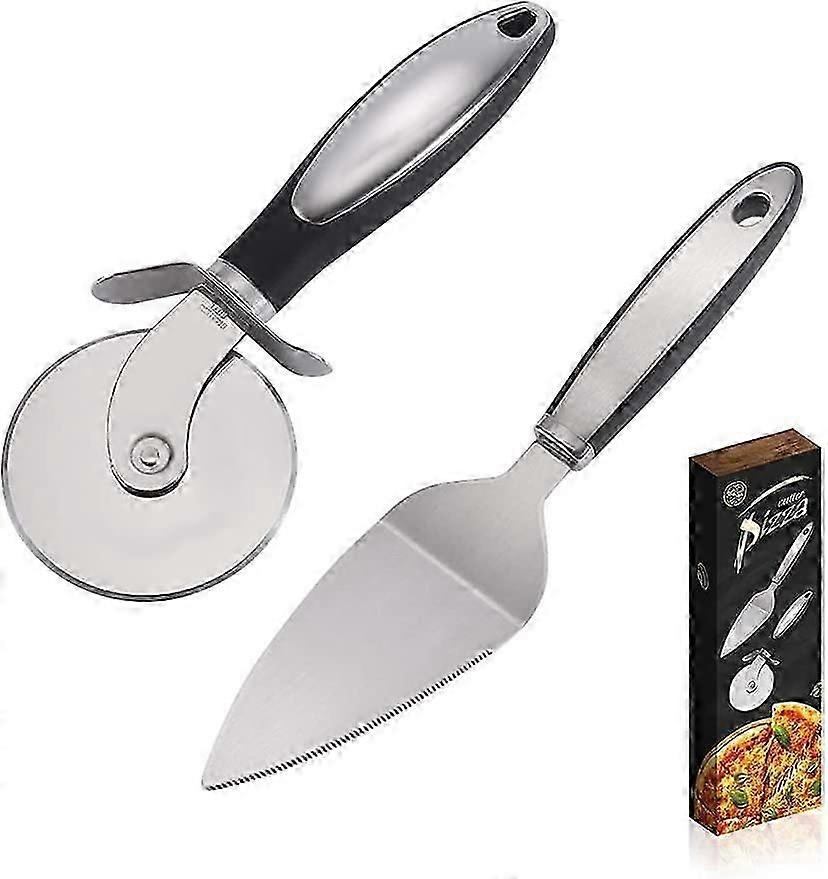 2pcs Pizza Cutter, Pizza Rollers and Pizza Shovel Set Stainless Steel with Non-Slip Handle
