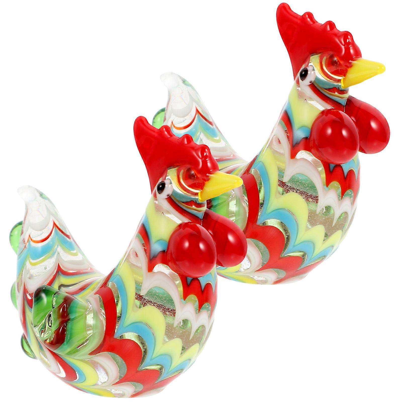 2Pcs Desktop Glass Chicken Figurine Standing Display Rooster Shape Multi Decoration