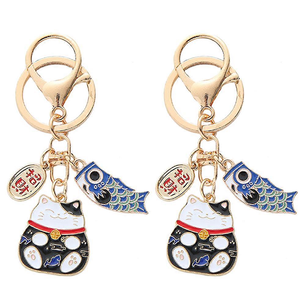 2pcs Fortune Cat Key Ring Japanese Style Keychain Zinc Alloy Key Chain Decor
