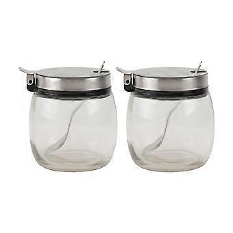 2PCS Spice Jars Round Glass Condiment Jars Container Salt Shakers with Stainless Steel Lid and Spoon