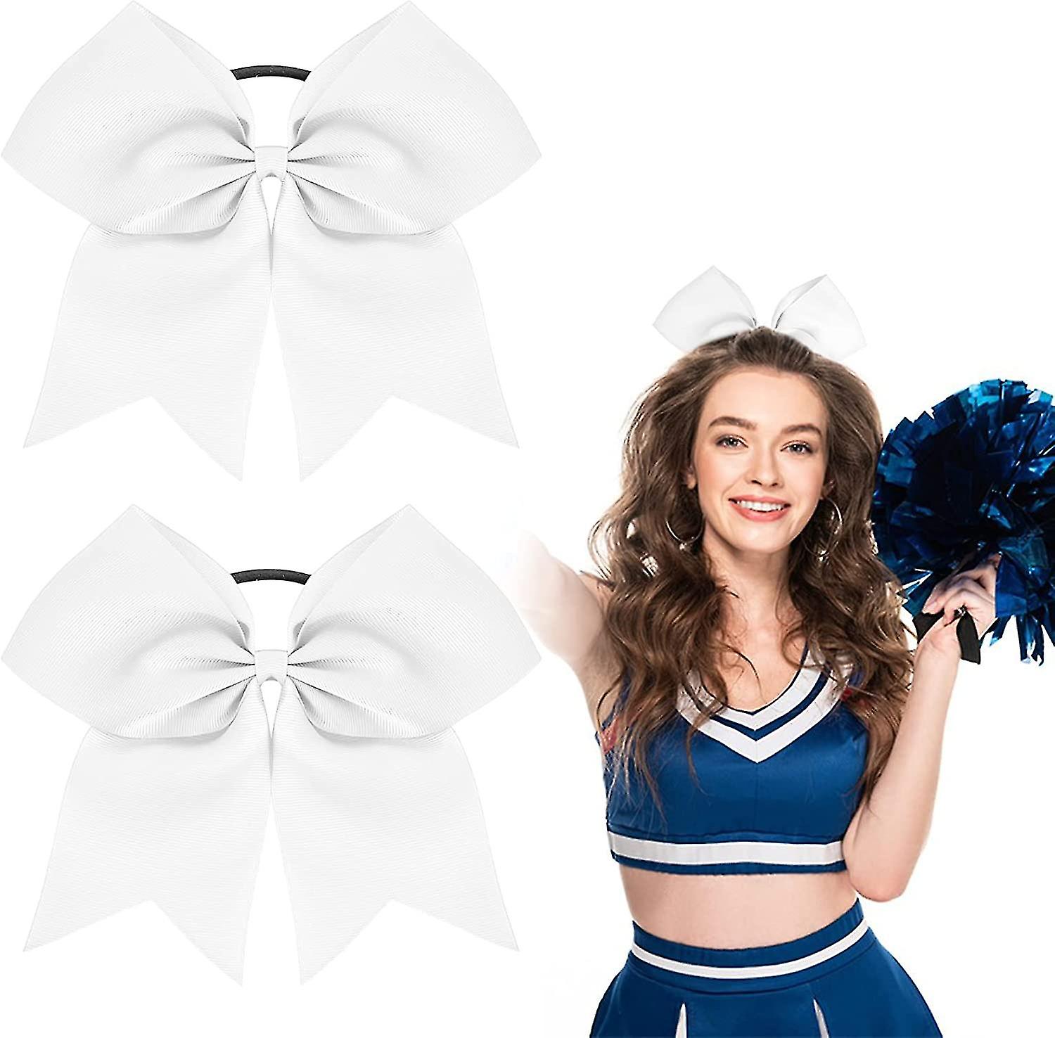 2pcs Large Cheer Bow 8 Inch Jumbo Cheer Hair Bows Ponytail Holder Elastic Band