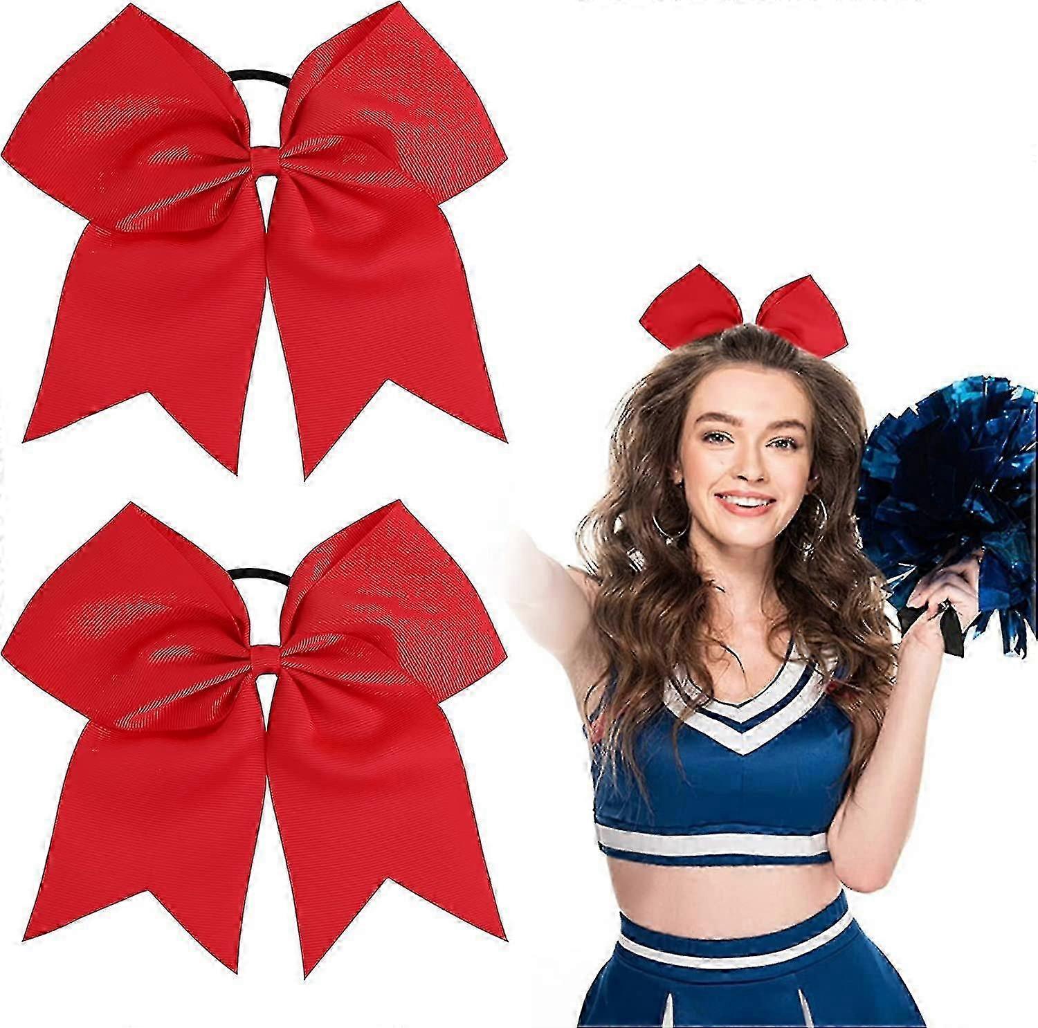 2pcs Large Cheer Bow 8 Inch Jumbo Cheer Hair Bows Ponytail Holder Elastic Band
