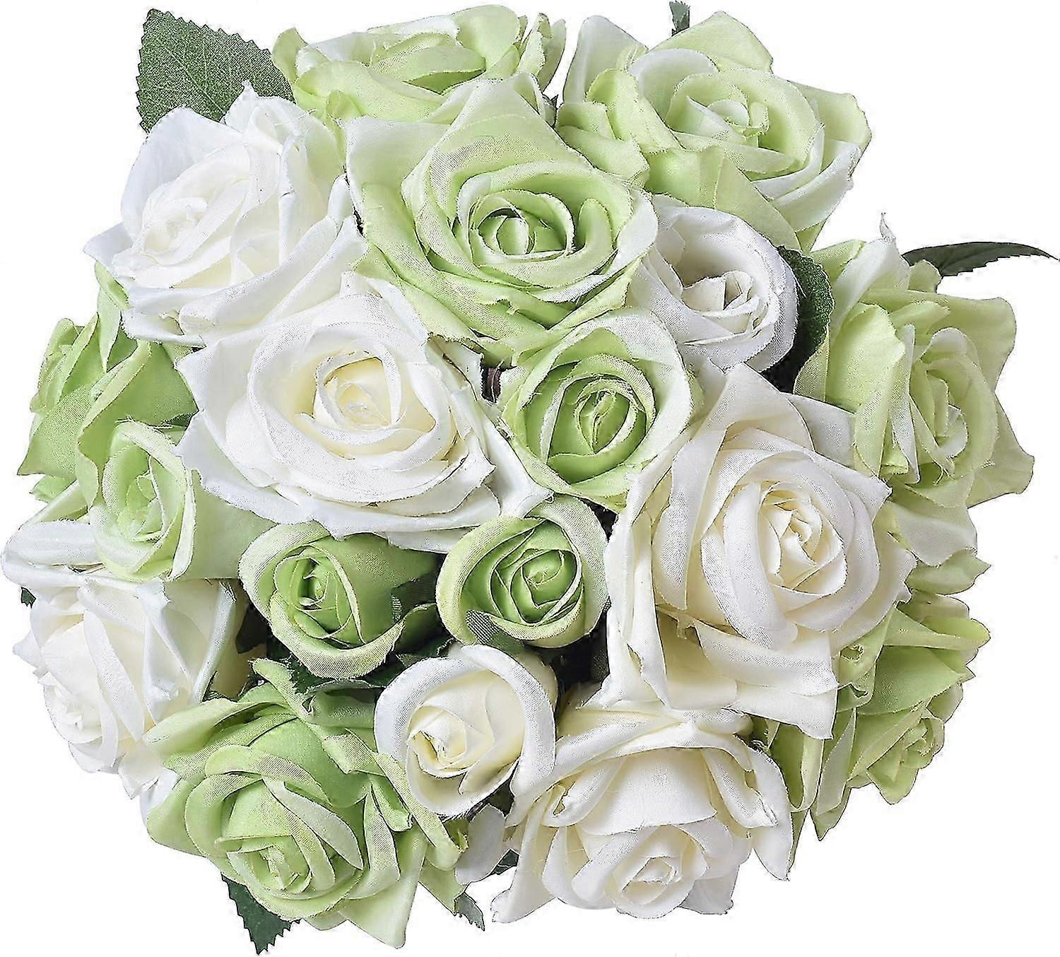 2Pcs Roses Artificial Flowers (1-Green with White, 2 Bouquet)