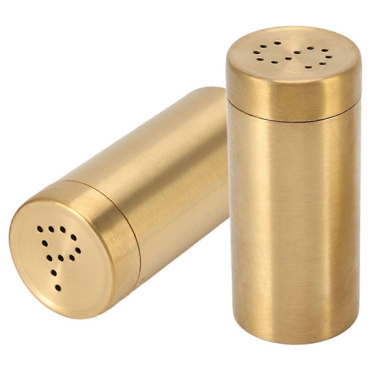 2Pcs Salt and Pepper Seasoning Bottle Gold Spice Jar Seasoning Bottle Stainless Steel Rustproof Screw Open Top Seasoning Shaker Bottle for Salt Sugar