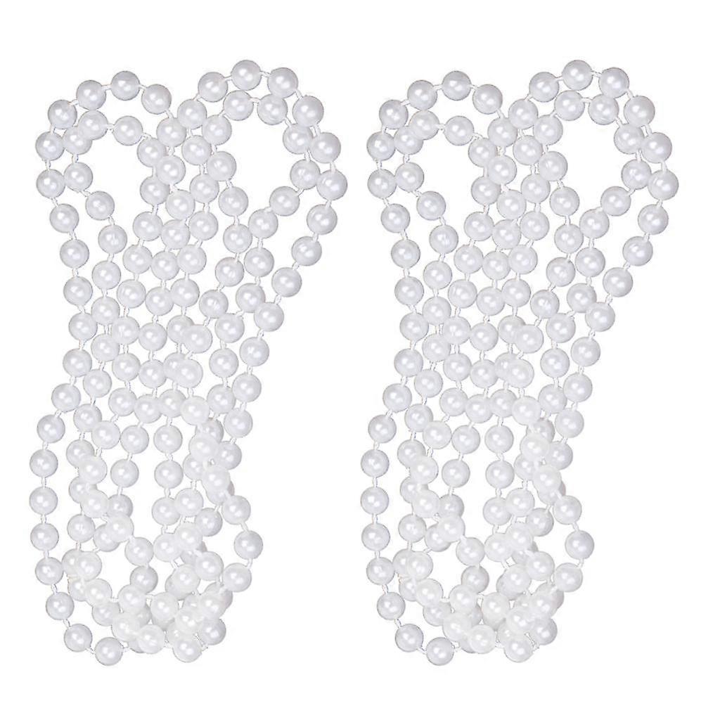 2/set Long White Plastic Pearls Necklace 20s Flapper Fancy Dress Accessories