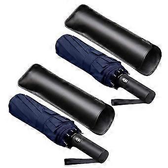 2x 12 Ribs Windproof Travel Umbrella With Ptfe Canopy, Lengthened Handle With Auto Open Close Butto