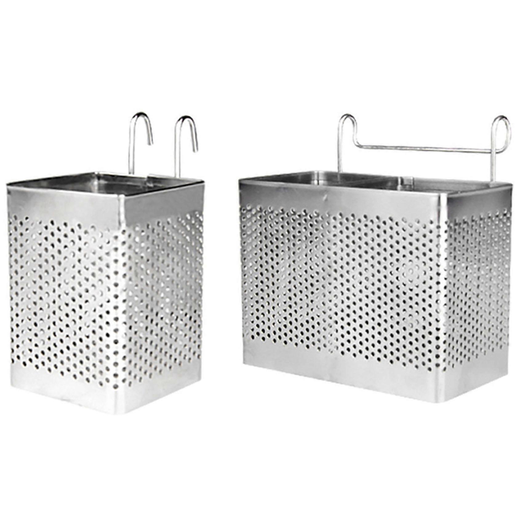 2x Stainless Steel Chopsticks Holder Hanging Cutlery Drying Basket Tableware Drainer with Hooks Kit
