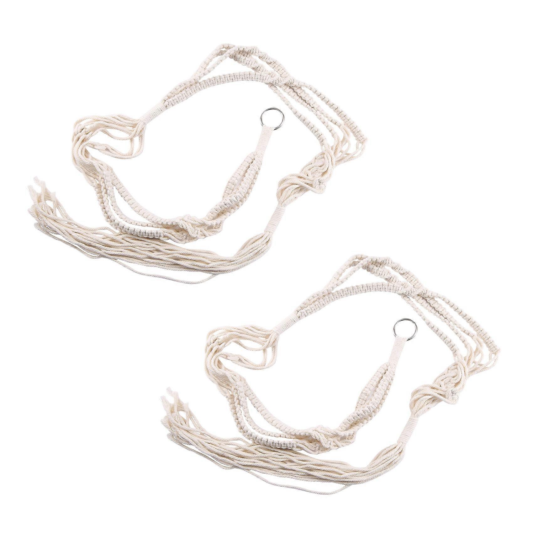 2X Macrame Double Plant Hanger Indoor Outdoor 2 Tier Hanging Planter Cotton Rope 4 Legs 67 inch