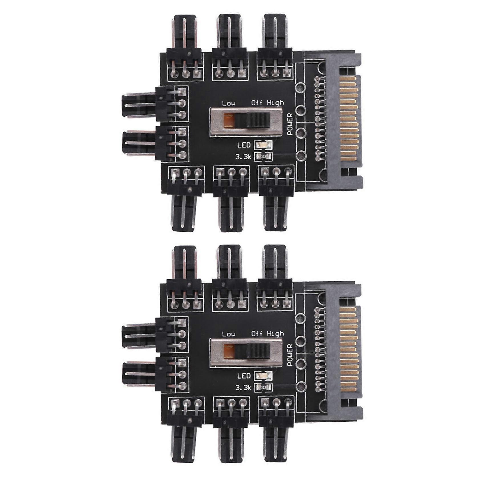 2X Multi Way Splitter Cooler Cooling Fan Hub PC Computer SATA 1 to 8 3Pin 12V Power Socket PCB Adapter XXM8