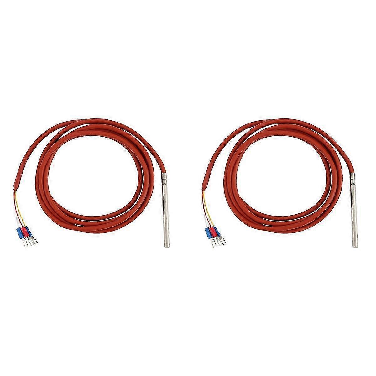 2X PT100 RTD Temperature Sensor Probe 6mmx80mm Class B with 2M Silicone Coated Wire Stainless Steel